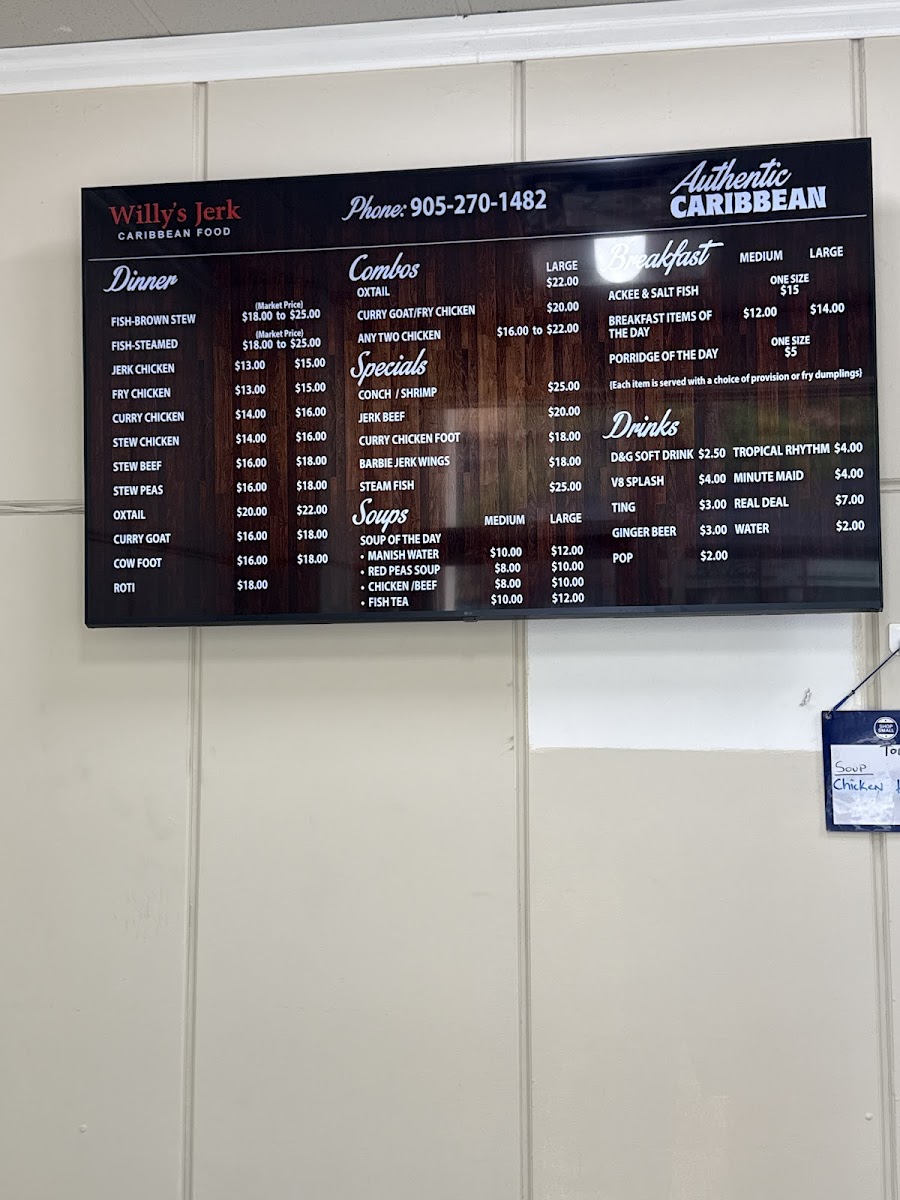 Willy's Jerk Menu